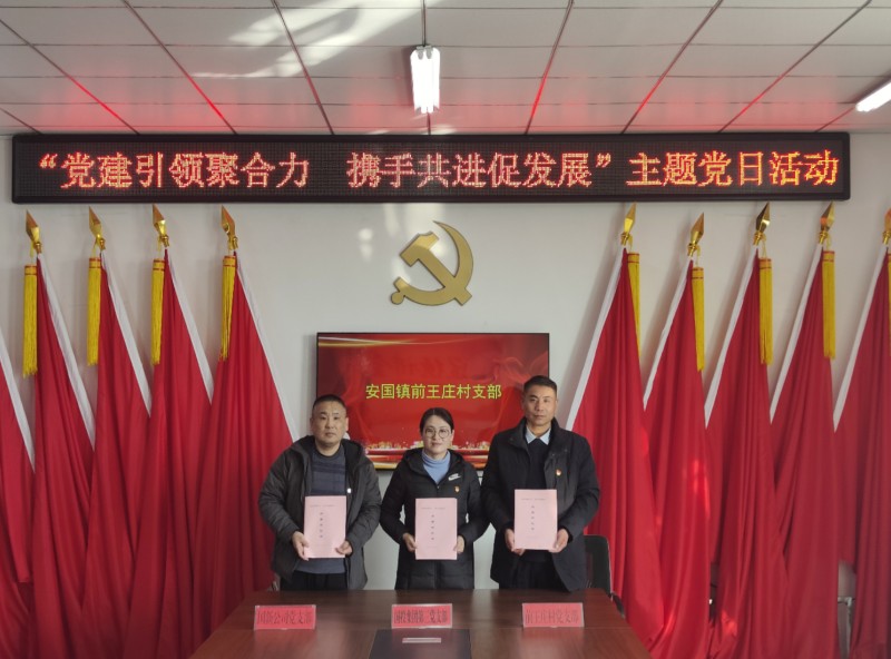 隨后,與會人員圍繞“村企聯(lián)建”開展“微調(diào)研”,在前王莊村委會黨員活動室召開座談會,分別介紹國投集團發(fā)展沿革、前王莊村基本情況、國新公司發(fā)展情況等,以“支部聯(lián)盟、活動聯(lián)辦、資源聯(lián)享、發(fā)展聯(lián)促”為抓手,著力構(gòu)建“以企帶村、以村促企、優(yōu)勢互補、互惠共贏”的發(fā)展新格局。會上,各方簽署了結(jié)對共建協(xié)議。