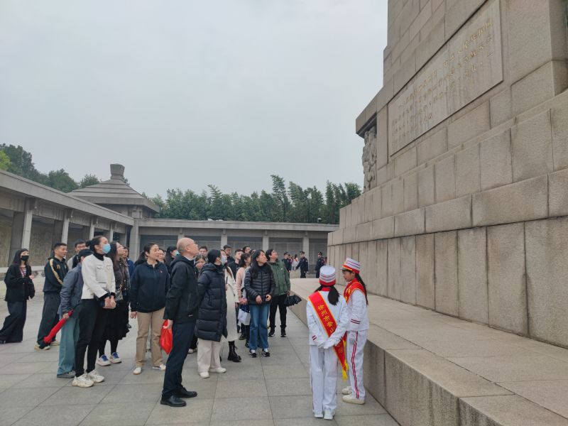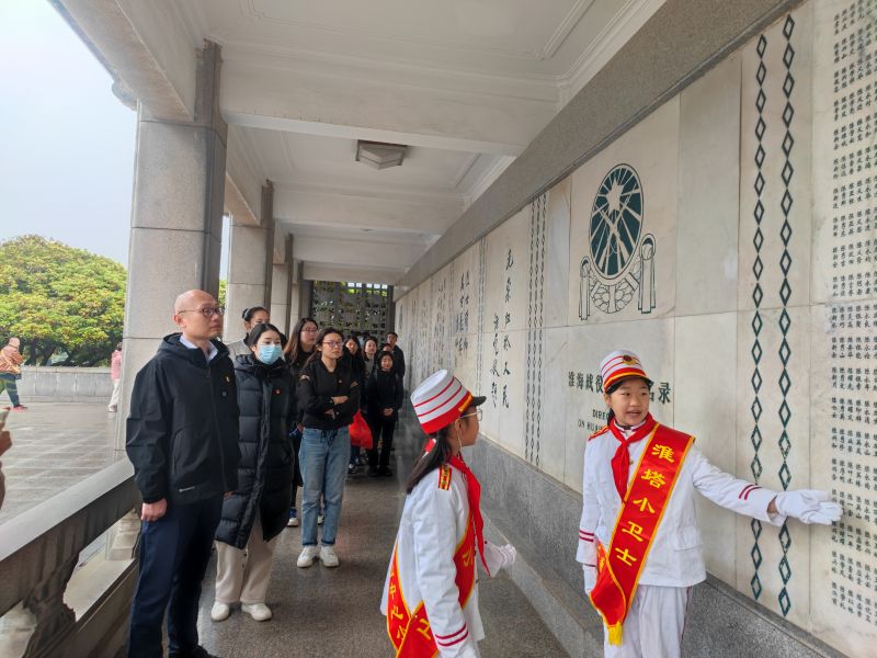 烈士陵園松柏靜哀、氣氛莊重,綿綿細(xì)雨中全體肅立,懷著沉重的心,默哀三分、敬獻(xiàn)鮮花。大家邁著緩慢的步伐繞塔一周,駐足瞻仰塔基上的場(chǎng)景浮雕,當(dāng)年淮海戰(zhàn)役壯觀的場(chǎng)面和戰(zhàn)士們視死如歸的氣勢(shì)仿佛重現(xiàn)在眼前。在淮塔小衛(wèi)士的帶領(lǐng)和講解下,觀詳烈士名錄,懷想革命先輩們?cè)⊙獖^戰(zhàn)的歷史,不無(wú)感嘆革命先烈英勇無(wú)畏的壯舉。嚴(yán)守紀(jì)律、團(tuán)結(jié)奮戰(zhàn)、不怕犧牲、勇于奉獻(xiàn)的精神深深觸動(dòng)著在場(chǎng)的每一個(gè)人。