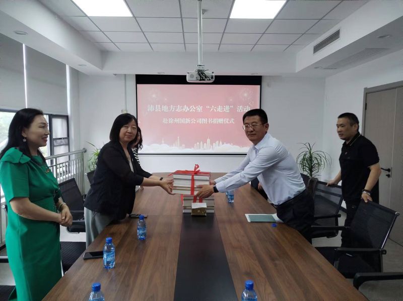 會上,徐州國新公司主要負(fù)責(zé)人介紹了徐州國新公司近期發(fā)展情況??h志辦向國新公司捐贈書柜2個,圖書10余種,共計(jì)100余冊。捐贈圖書均為地方志文獻(xiàn)類書籍,內(nèi)容涵蓋沛縣政治、歷史、地理、人物等多個領(lǐng)域。