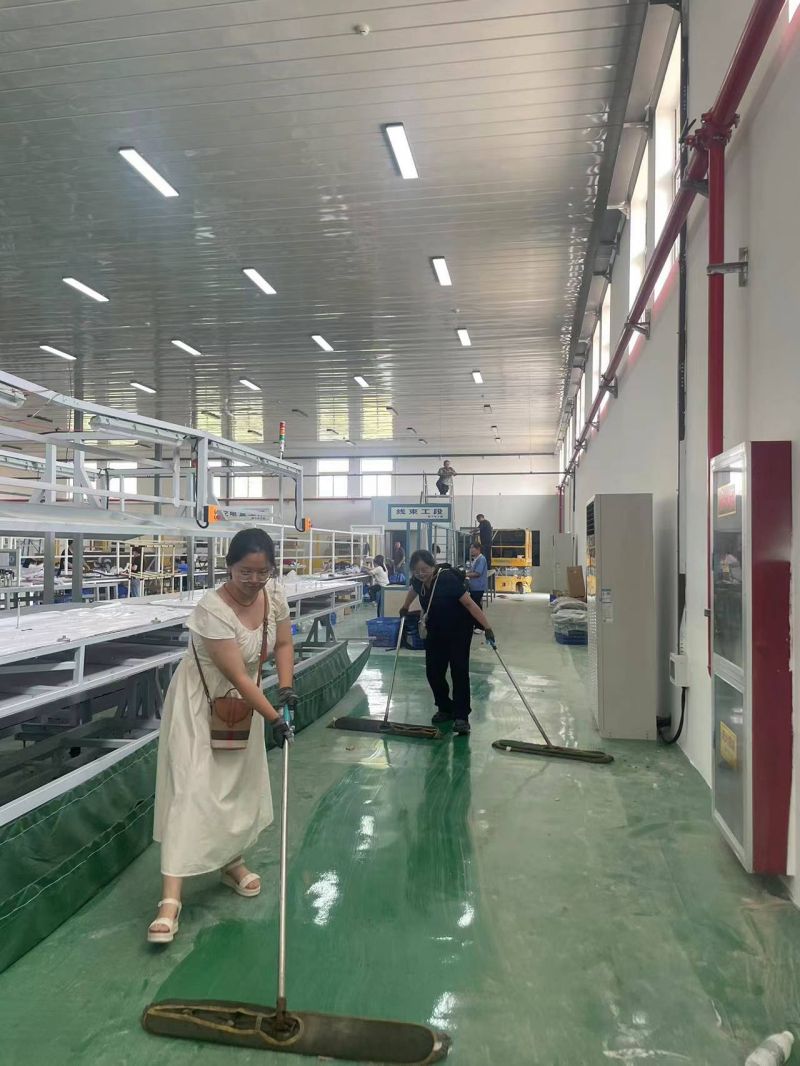 活動開始,新亞公司相關(guān)負責(zé)人向大家講解了注意安全事項,分發(fā)工作手套和防護用品,按照分配工作內(nèi)容大家熱火朝天的投入了新工廠的整理及清掃進程。黨員干部們率先垂范,帶頭拿起清掃工具開展現(xiàn)場打掃,男同志們負責(zé)規(guī)整運送貨物至倉庫,女同志們按照各自包干區(qū)域細致清掃廠區(qū)地面。在炎熱的高溫下,大家齊心協(xié)力、分工協(xié)作、奮勇爭先,很快完成各自分配任務(wù),充分體現(xiàn)了不怕苦不怕累的戰(zhàn)斗精神。