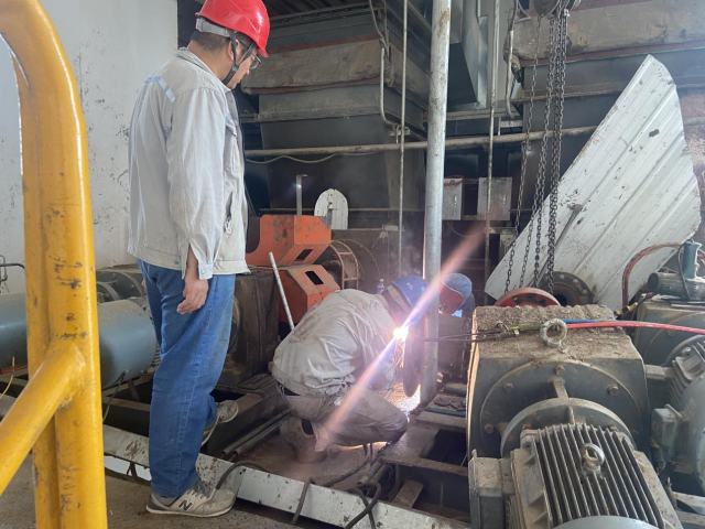 豐縣全新世可再生能源有限公司檢修人員搶修給料螺旋軸承法蘭,保障五一期間機(jī)組正常運(yùn)行。