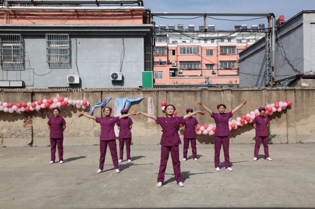 緊接著,令人期待的展示活動(dòng)正式拉開(kāi)帷幕。14支代表隊(duì)化身為 “健康領(lǐng)操天團(tuán)”,依次步入展示場(chǎng)地中央。她們將傳統(tǒng)智慧與現(xiàn)代活力巧妙融合于健身操之中,用靈動(dòng)的舞姿、燦爛的笑容和充滿韻律的跳動(dòng),把科室特色完美融入古法減脂操,以多樣的運(yùn)動(dòng)風(fēng)格,生動(dòng)展現(xiàn)了團(tuán)隊(duì)團(tuán)結(jié)協(xié)作、積極向上的精神風(fēng)貌。這場(chǎng)精彩絕倫的表演,不僅讓大家看到了白衣天使在工作中守護(hù)健康的專業(yè)形象,更領(lǐng)略到她們用運(yùn)動(dòng)傳遞快樂(lè)的別樣魅力。表演結(jié)束后,現(xiàn)場(chǎng)觀眾熱情高漲,紛紛加入到古法減脂操的跳動(dòng)行列,將活動(dòng)氛圍推向高潮。此外,一位白衣天使還現(xiàn)場(chǎng)獻(xiàn)唱歌曲《愛(ài)的路上千萬(wàn)里》,用歌聲向所有護(hù)士姐妹送上節(jié)日祝福與崇高敬意。