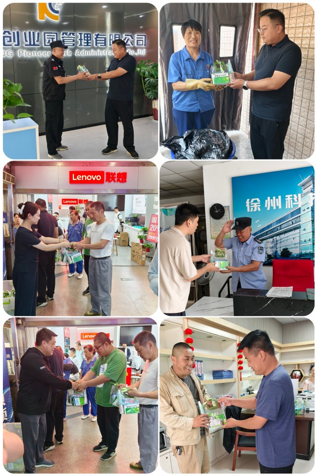 在慰問(wèn)活動(dòng)中,海云黨支部紀(jì)檢委員、重資產(chǎn)板塊總經(jīng)理王天一率隊(duì)深入科創(chuàng)公司、海云公司、萬(wàn)通公司作業(yè)現(xiàn)場(chǎng),實(shí)地走訪工程維修與保安保潔崗位。慰問(wèn)組一方面督促各單位強(qiáng)化高溫天氣下勞動(dòng)者權(quán)益保障機(jī)制,從嚴(yán)落實(shí)生產(chǎn)安全與職工健康“雙保障”要求,同步開(kāi)展高溫安全隱患專(zhuān)項(xiàng)排查;另一方面向堅(jiān)守崗位的一線人員致以誠(chéng)摯問(wèn)候,反復(fù)叮囑做好個(gè)人防暑降溫措施,隨身攜帶藿香正氣水等常備藥品,并為其發(fā)放海云黨支部精心籌備的“清涼包”,累計(jì)發(fā)放物資六十余份。一線職工紛紛表示,將在確保作業(yè)安全的前提下,持續(xù)提升重資產(chǎn)板塊工程維修與物業(yè)服務(wù)質(zhì)效。