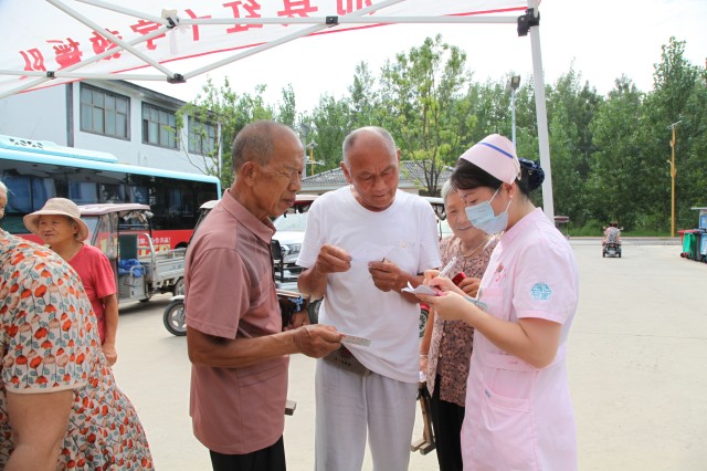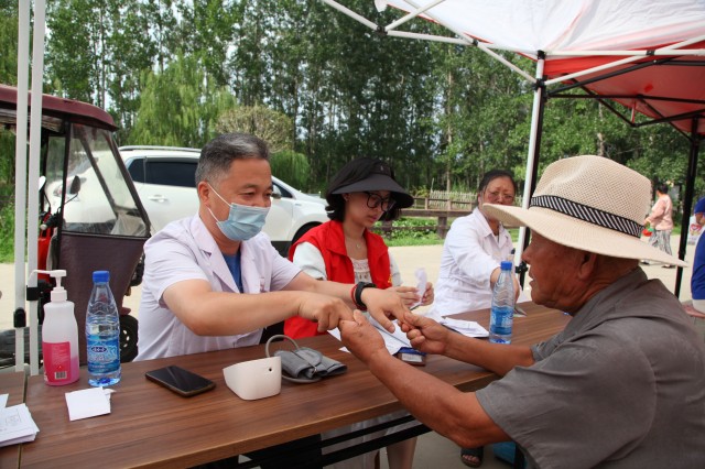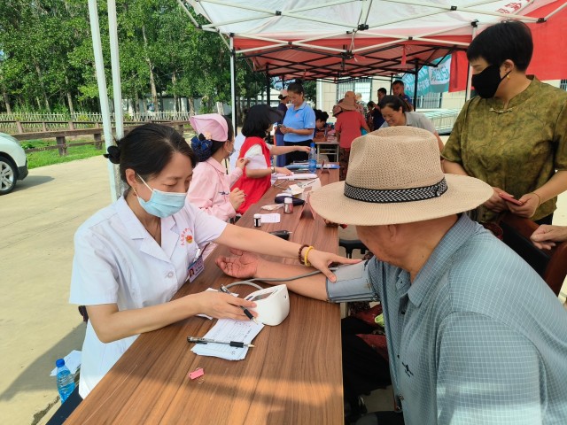 活動(dòng)當(dāng)天,很多村民早已在活動(dòng)現(xiàn)場(chǎng)等候醫(yī)務(wù)人員的到來(lái)。醫(yī)務(wù)志愿者們迅速搭建起臨時(shí)服務(wù)臺(tái),立即開(kāi)始為村民們免費(fèi)測(cè)量血壓、血糖,細(xì)致檢查視力,并結(jié)合檢測(cè)數(shù)據(jù)開(kāi)展針對(duì)性健康指導(dǎo),解答健康問(wèn)題咨詢(xún)。針對(duì)現(xiàn)場(chǎng)老年村民普遍存在的血壓偏高問(wèn)題,醫(yī)務(wù)人員重點(diǎn)講解了低鹽飲食、控制體重、規(guī)范用藥注意事項(xiàng)及情緒調(diào)節(jié)方法,條理清晰的講解讓村民們頻頻點(diǎn)頭。