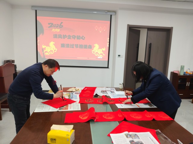 活動(dòng)中,黨員們結(jié)合崗位實(shí)際,現(xiàn)場(chǎng)創(chuàng)作并書寫廉政對(duì)聯(lián),以筆墨傳遞廉意,以初心堅(jiān)守底線。最后,全體黨員鄭重簽訂《2026年春節(jié)廉潔過節(jié)承諾書》,承諾嚴(yán)守廉潔紀(jì)律,筑牢思想防線。