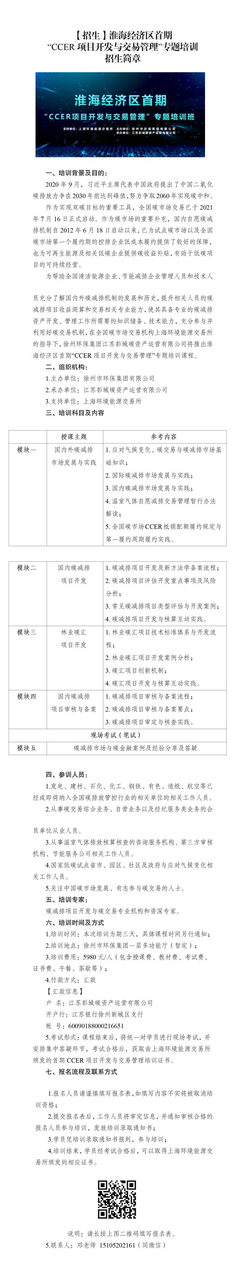 【招生】淮海經(jīng)濟(jì)區(qū)首期“CCER項(xiàng)目開發(fā)與交易管理”專題培訓(xùn)招生簡章