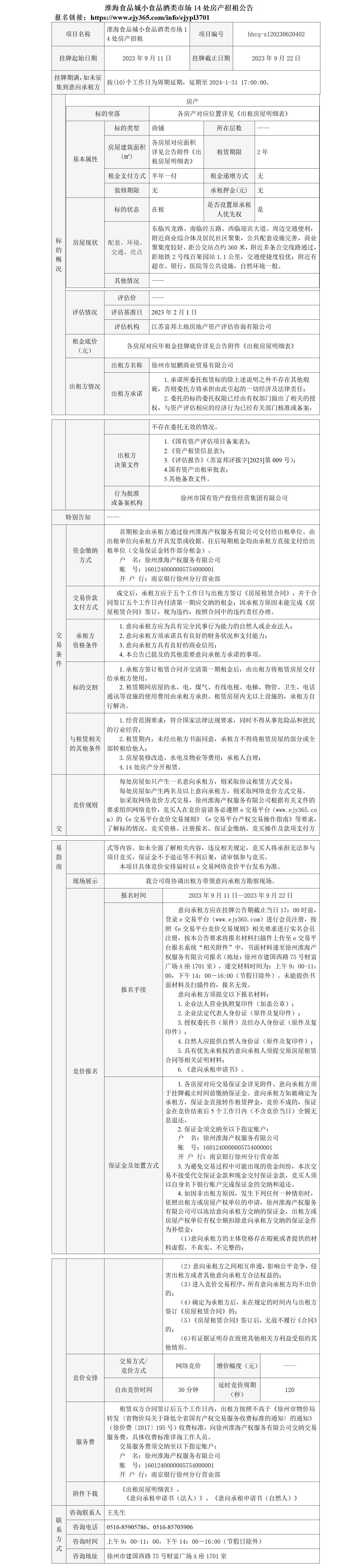 淮海食品城小食品酒類市場14處房產(chǎn)招租公告