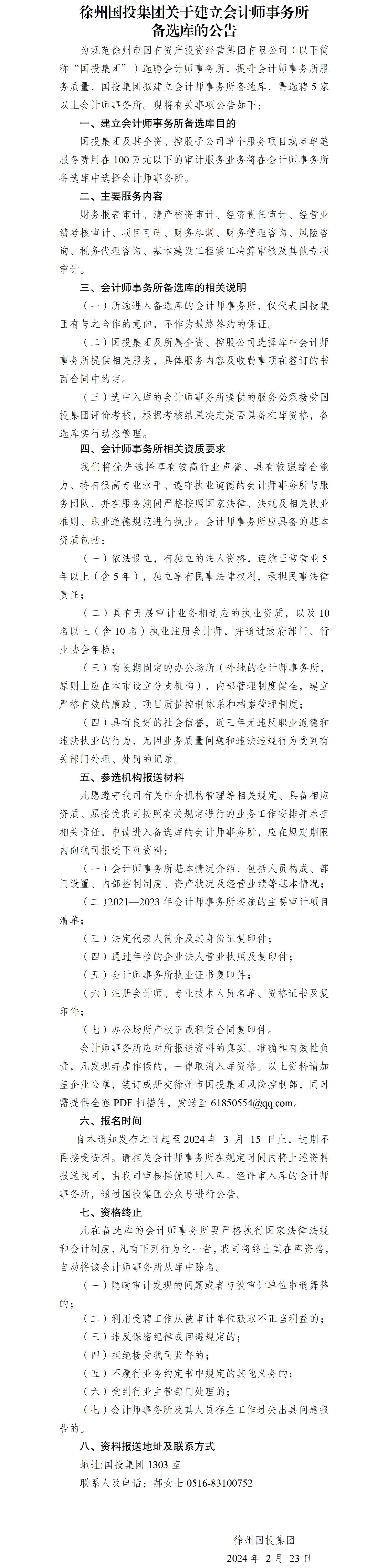 關(guān)于成立國投集團(tuán)會計師事務(wù)所備選庫的公告