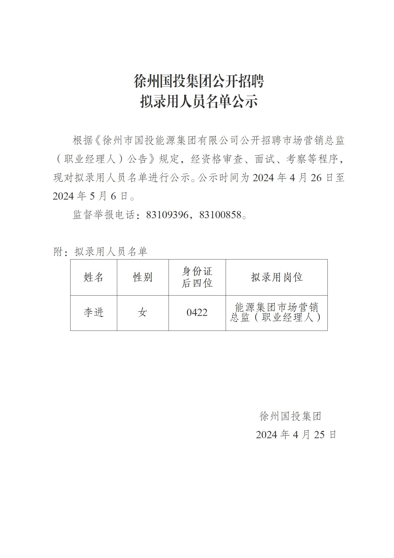 徐州國(guó)投集團(tuán)公開招聘擬錄用人員名單公示