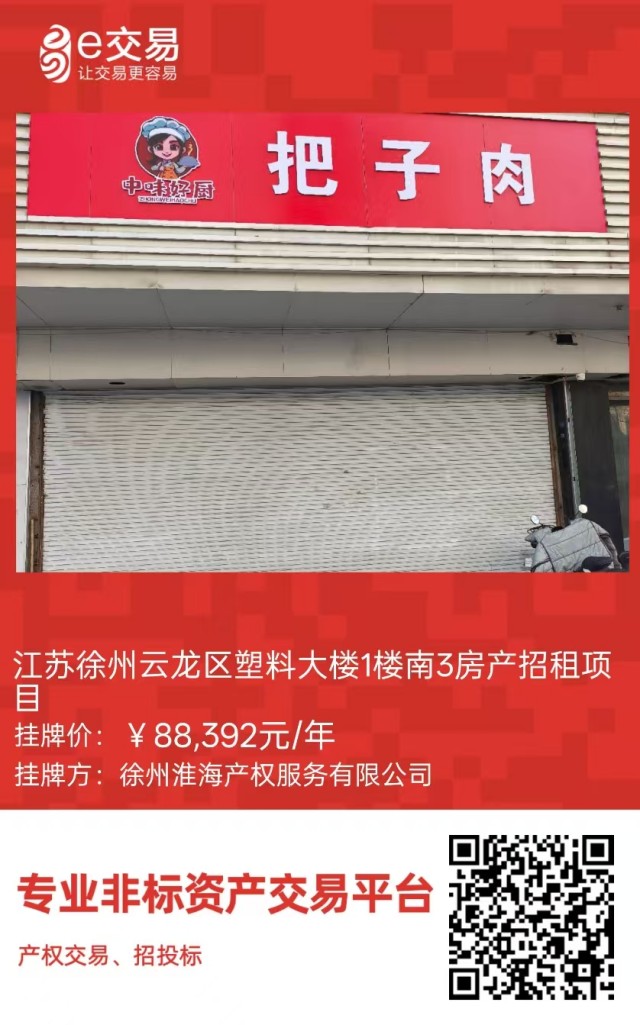 江蘇徐州云龍區(qū)塑料大樓1樓南1北部分房產(chǎn)招租公告
