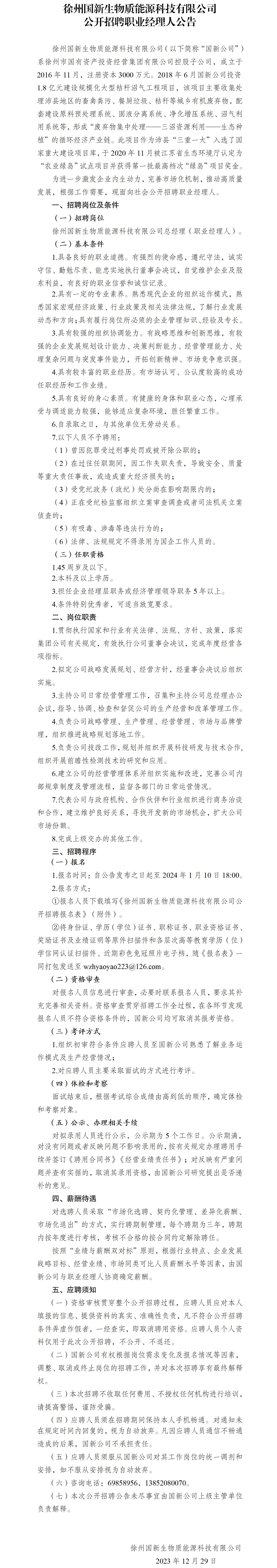 徐州國新生物質(zhì)能源科技有限公司公開招聘職業(yè)經(jīng)理人公告