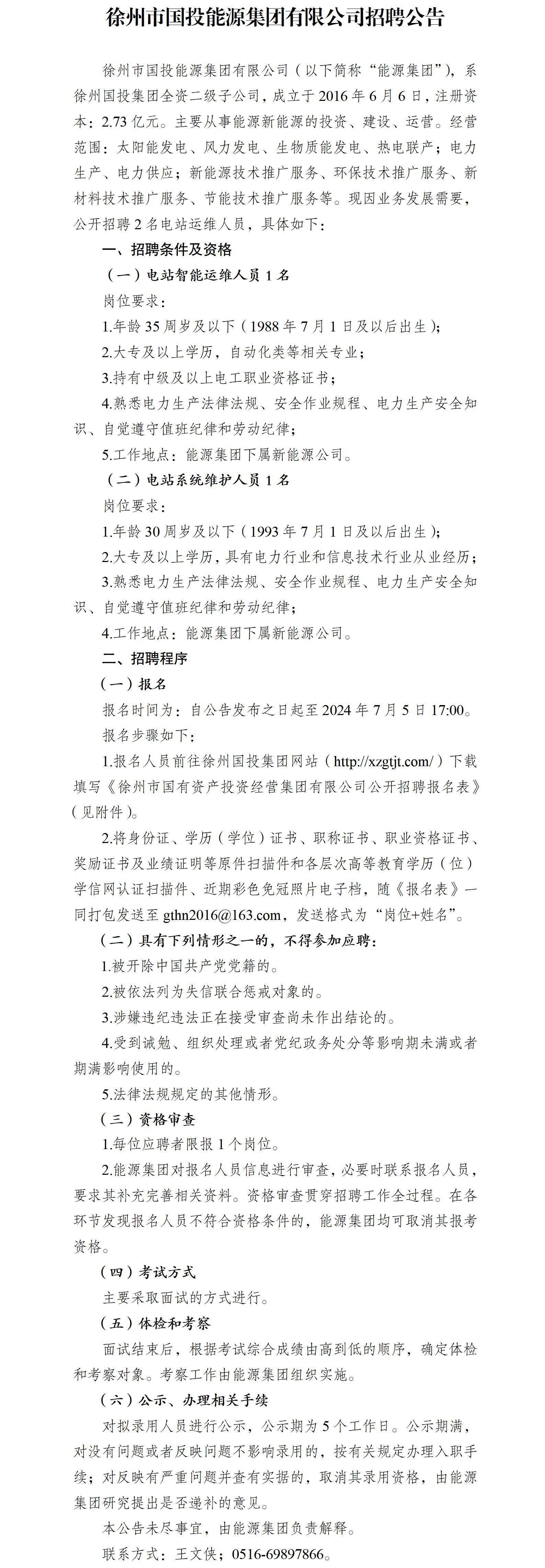 徐州市國投能源集團(tuán)有限公司招聘公告