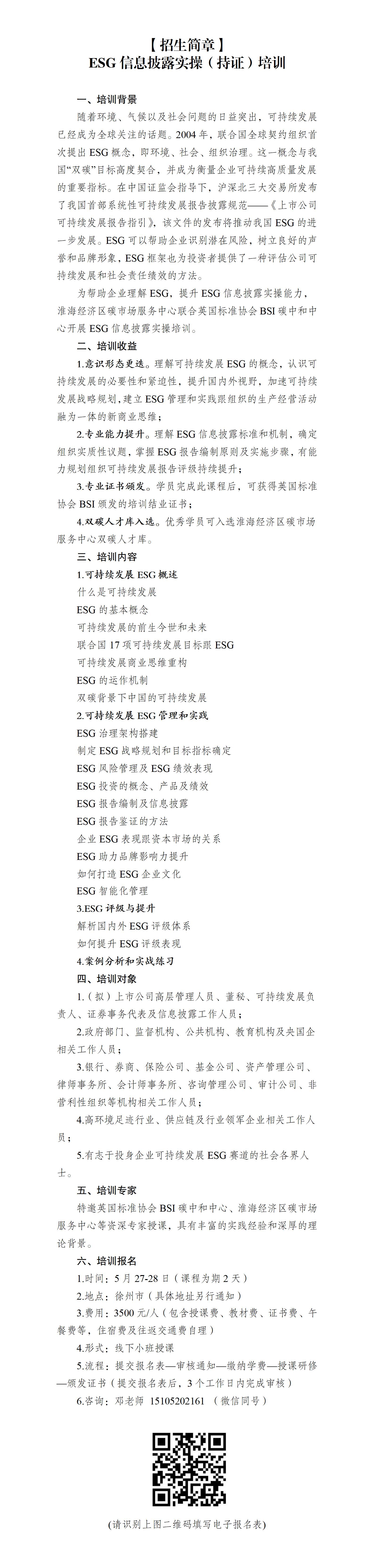 【招生簡章】ESG信息披露實操(持證)培訓(xùn)