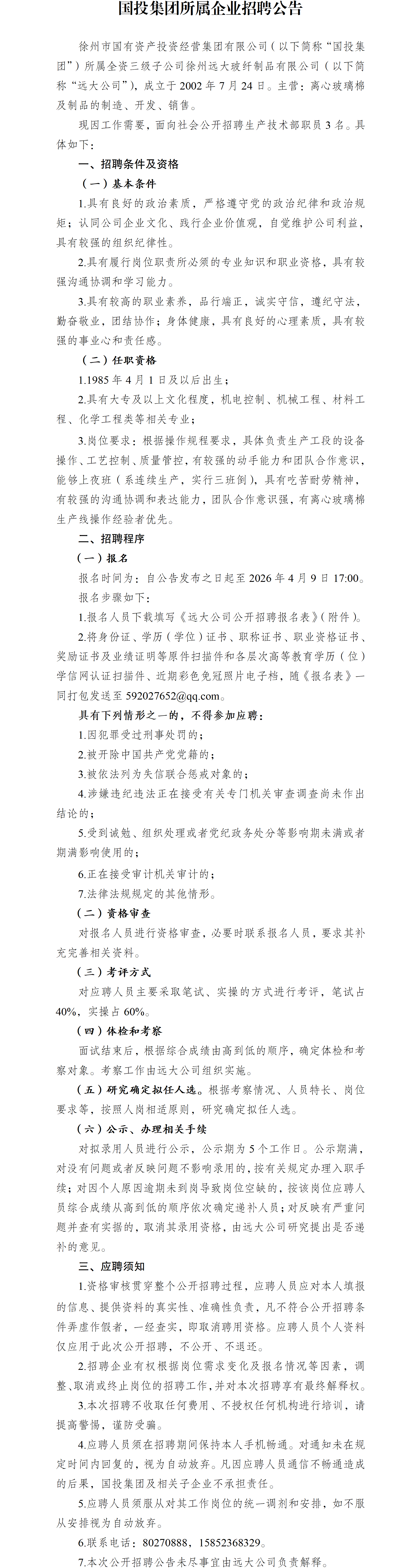 徐州市國有資產(chǎn)投資經(jīng)營集團有限公司所屬企業(yè)對外公開招聘公告