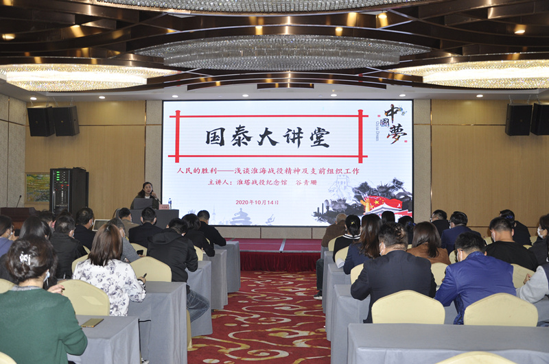 為持續(xù)深入開展習近平新時代中國特色社會主義思想學習教育,全面落實《國泰投資公司建設學習型企業(yè)實施方案》文件精神,培養(yǎng)企業(yè)核心競爭力,促進國泰投資公司轉型發(fā)展。近日,國泰投資開展“國泰大講堂”活動,第一期由機關黨支部承辦,特邀淮海戰(zhàn)役紀念館谷青珊老師授課。國…