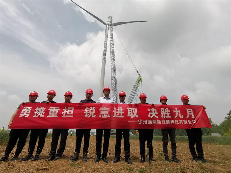 國湖公司首臺風機順利吊裝完成!