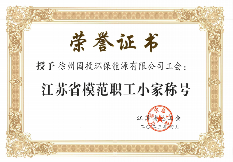國投環(huán)能公司工會(huì)榮獲“江蘇省模范職工小家”榮譽(yù)稱號(hào)