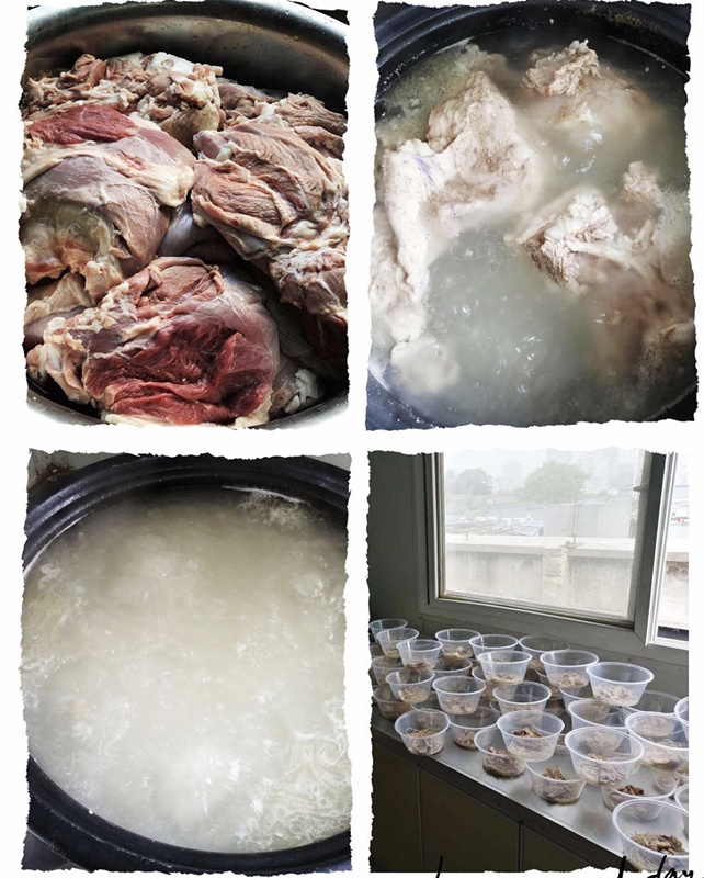 此次活動,物華支部進行了精心的策劃和準備,從羊肉的采購、輔料的搭配,到喝羊湯的必備--壯饃,都一一做了細致安排。最關(guān)鍵就是熬制環(huán)節(jié),為了保證業(yè)戶們在入伏第一天的中午能夠喝上湯鮮味美的羊肉湯,物華公司員工凌晨4點就進入了熬制羊湯的環(huán)節(jié),經(jīng)過近6個小時的文火慢燉,精心熬制出來的羊湯色澤乳白,鮮而不膻。