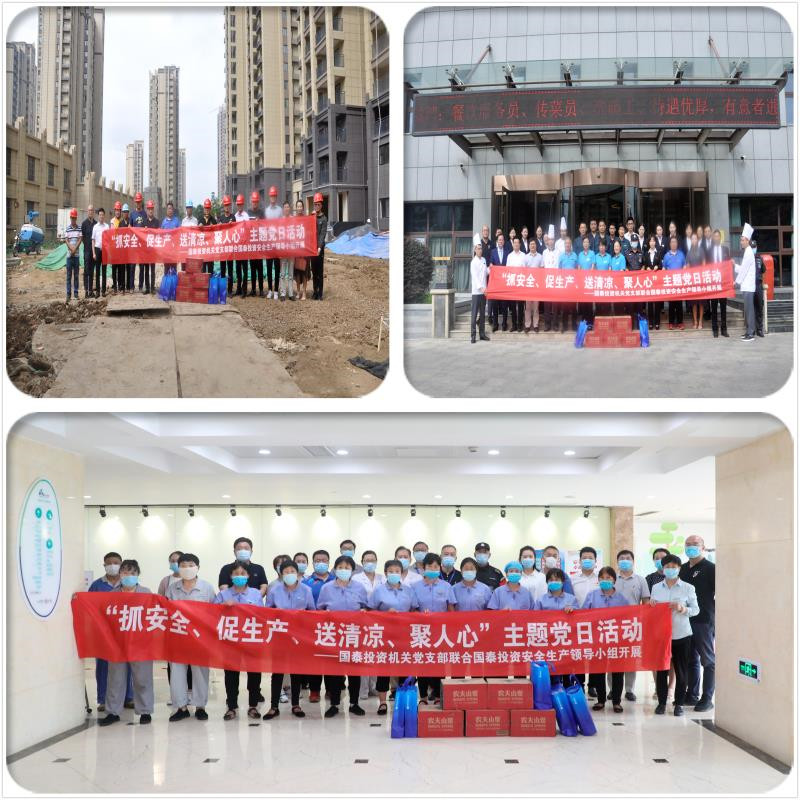 為全面落實(shí)集團(tuán)公司《關(guān)于布置落實(shí)<省安委會(huì)辦公室關(guān)于切實(shí)做好夏季高溫期間安全生產(chǎn)工作的通知>的通知》文件精神,充分發(fā)揮基層黨組織戰(zhàn)斗堡壘作用,把黨組織的關(guān)懷傳遞到奮斗在一線崗位的每一位員工,切實(shí)做好防暑降溫工作,確保生產(chǎn)安全。8月27日上午,國泰投資機(jī)關(guān)黨支部聯(lián)合國泰投資安全生產(chǎn)領(lǐng)導(dǎo)小組開展送清涼主題黨日活動(dòng),機(jī)關(guān)及各直屬黨支部書記、安全生產(chǎn)領(lǐng)導(dǎo)小組成員參加活動(dòng)。
