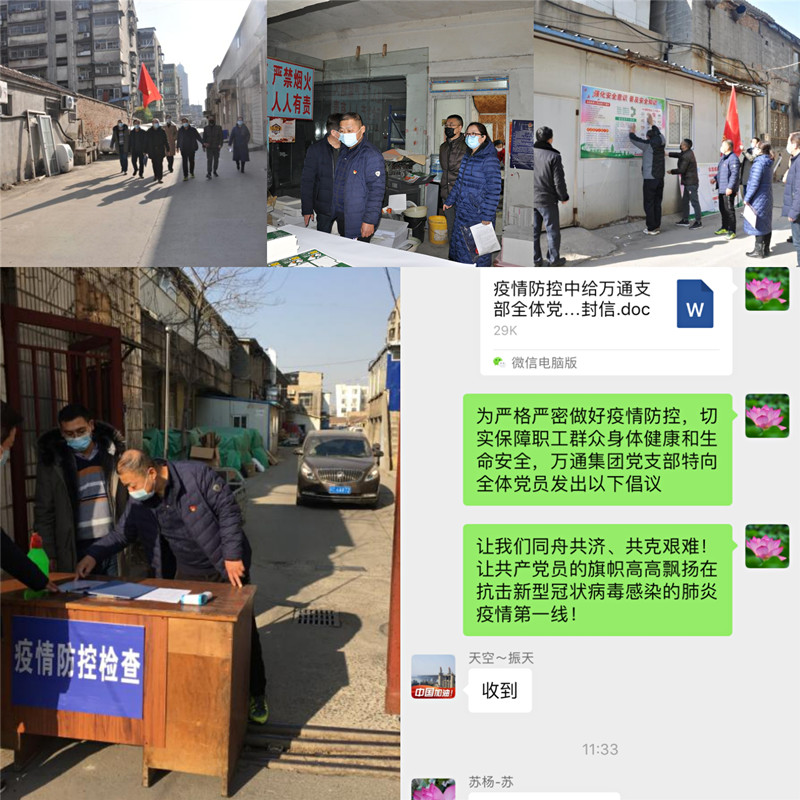 萬通集團黨支部通過學習強國會議平臺傳達集團公司疫情防控文件精神和商辦工業(yè)公司疫情防控工作部署,并在黨員微信群發(fā)出倡議:“讓我們同舟共濟、共克艱難!讓共產(chǎn)黨員的旗幟高高飄揚在抗擊新冠肺炎疫情的第一線!”1月18日下午,在支部書記張安民同志的帶領(lǐng)下,黨員先鋒隊全體隊員來到公司所屬商機廠,分工分頭開展工作,有的懸掛疫情防控宣傳展板、分發(fā)疫情防控知識手冊,有的在防控崗登記測溫、向業(yè)戶發(fā)放倡議書,大家干得熱火朝天,忘記了天寒、忘記了時間。