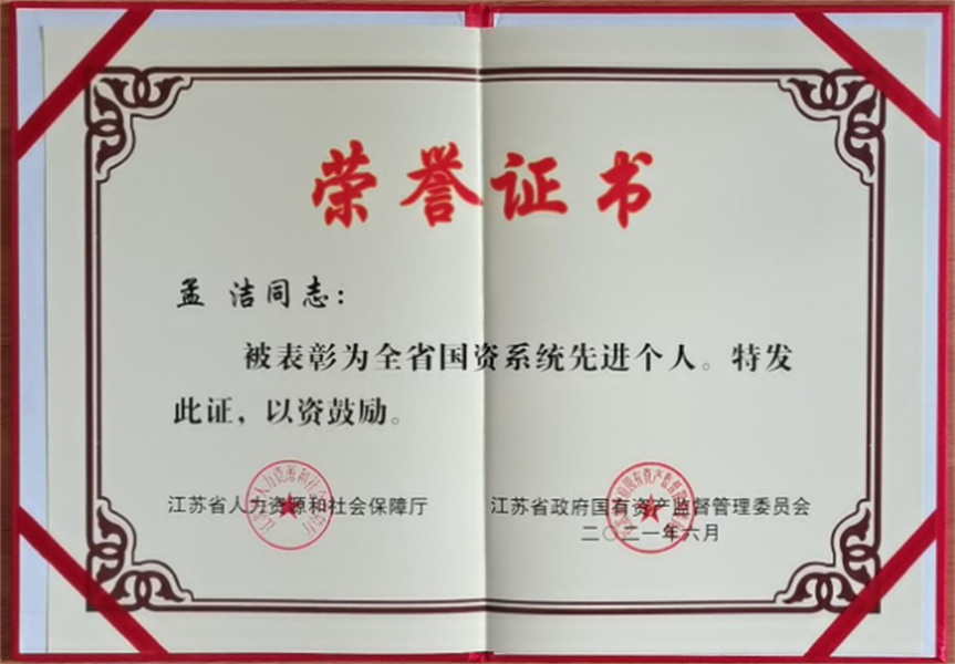 孟潔同志榮獲2021年“全省國資系統(tǒng)先進(jìn)個人”榮譽(yù)稱號