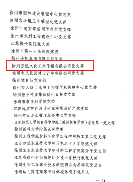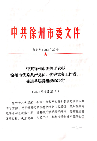蘇悅黨支部榮獲徐州市“先進(jìn)基層黨組織”榮譽(yù)稱號