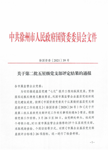 環(huán)能機(jī)關(guān)黨支部、蘇悅黨支部獲市國資委“五星級黨支部”稱號