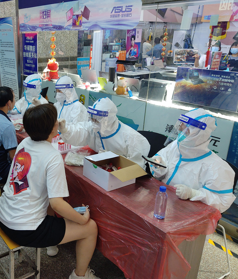 為貫徹落實徐國投疫防辦〔2021〕1號關(guān)于加強常態(tài)化疫情防控工作的通知,強化新冠疫情防控工作,筑牢海云大廈業(yè)戶的健康“防護(hù)墻”,海云公司第一時間與云龍區(qū)商務(wù)局及云龍區(qū)衛(wèi)生防疫站進(jìn)行聯(lián)系,8月3日,在海云大廈現(xiàn)場對所有業(yè)戶及從業(yè)人員約700人進(jìn)行了全員免費核酸檢測。