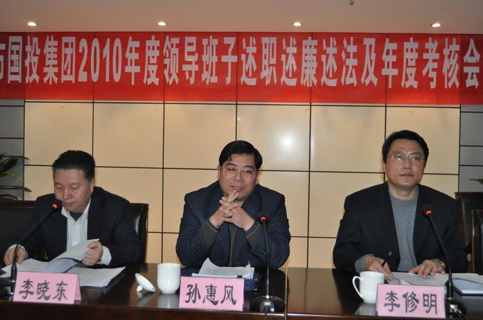 參加本次會議的有市委組織部考核組成員、集團公司領導班子全體成員、集團公司本部中層以上干部和部分職工代表,共計40余人。集團公司黨委書記、董事長李修明主持了會議,并代表集團公司領導班子對過去一年在思想政治建設、完成重點任務、工作實績、領導水平、反腐倡廉以及依法經(jīng)營等方面的情況向大會進行了述職述廉述法報告。李修明及黨委副書記、副董事長、總經(jīng)理李曉東分別做了本人一年來的述職述廉述法報告。