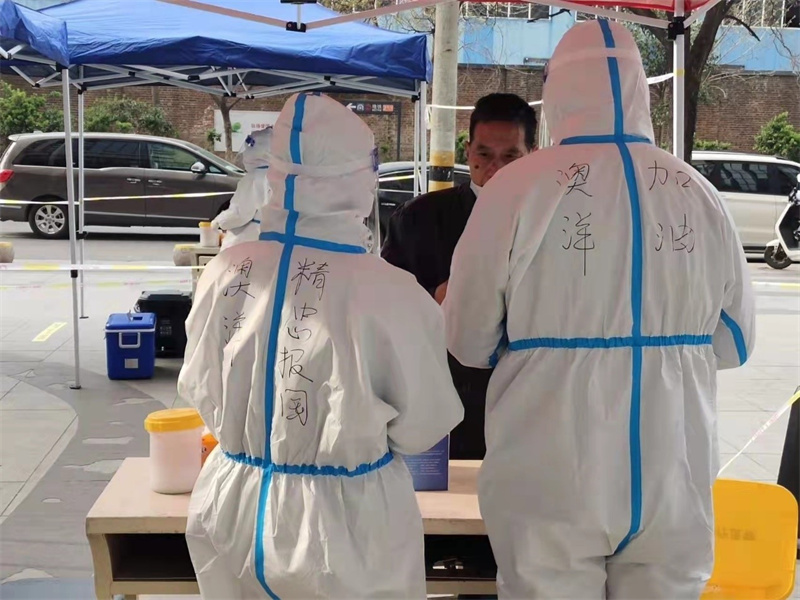 “叮叮?!痹缟?點(diǎn)鐘,鬧鈴急促地響起,國(guó)泰投資95后青年團(tuán)員戚圓圓看了一眼手機(jī),便快速起床,按照前一天志愿服務(wù)群里的安排急匆匆走向核酸檢測(cè)點(diǎn),開始了新一天的志愿服務(wù)。雖然是公司年齡最小的志愿者,但她從5號(hào)開始已連續(xù)4天,穿著防護(hù)服進(jìn)行核酸采樣信息錄入、試管樣本遞送、維持隊(duì)列秩序、上門采集黃碼信息。每天從6點(diǎn)到下午3點(diǎn),持續(xù)高強(qiáng)度工作9個(gè)小時(shí),即便如此,她依然是干勁十足。她說“社區(qū)還有70多歲的爺爺奶奶加入了志愿者隊(duì)伍,我這么年輕,出點(diǎn)汗、出點(diǎn)力沒事兒,能夠與白衣天使們并肩作戰(zhàn),用自己的青春守護(hù)著家園,我感到非常自豪?!?