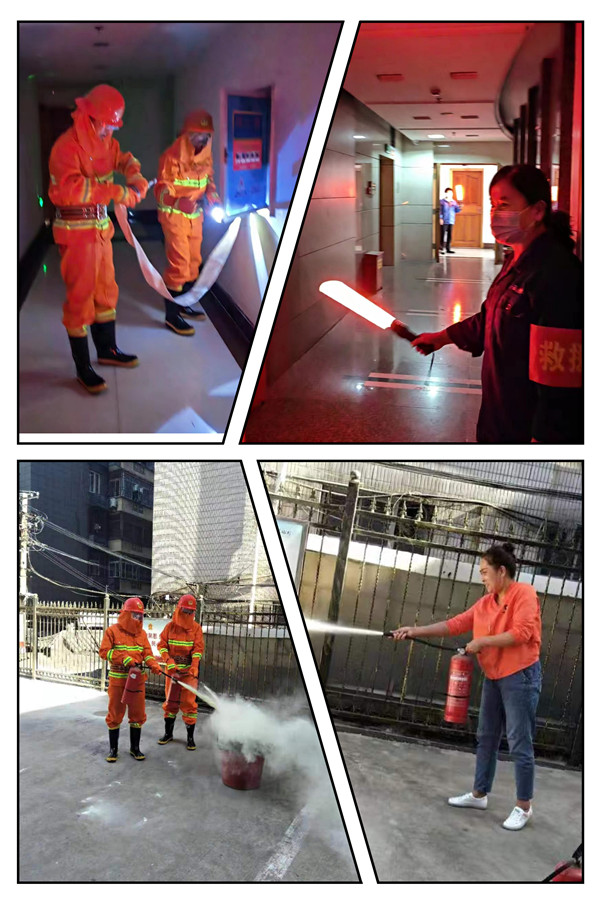 最后,進行消防應急演練,模擬發(fā)生火情,立即啟動應急預案并及時報警,利用廣播系統(tǒng)疏散樓內(nèi)工作人員,物業(yè)人員配備各種消防裝備及用品,立即進行火災初期處置。演練中,大家按照“結(jié)合實際、著眼實戰(zhàn)、確保安全”的要求,聽從指揮部指揮,疏散人員、火場供水、通訊保障、現(xiàn)場監(jiān)護,經(jīng)過全體參加演練人員的密切配合、協(xié)同作戰(zhàn),圓滿完成了演練任務。