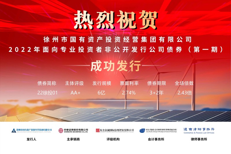 本期公司債發(fā)行是徐州國投集團(tuán)在資本市場的首次亮相,2.74%的票面利率創(chuàng)下了近年來全國AA+主體3年期及以上私募公司債券發(fā)行利率新低;同時(shí)亦是非公開信用類債券發(fā)行利率歷史最低記錄。此次發(fā)行獲得市場投資者踴躍認(rèn)購,全場認(rèn)購倍數(shù)達(dá)2.43倍。
