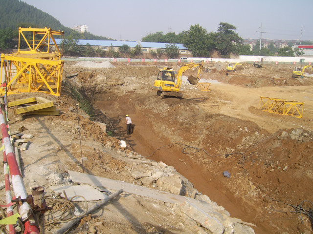 為了加快施工進(jìn)度,項(xiàng)目部已提前做好了工程的準(zhǔn)備工作,如已完成了項(xiàng)目的平整、爆破、開挖、渣土清運(yùn)等工作,完成了場地施工道路、臨時用水、臨時用電等工作。施工隊(duì)伍及監(jiān)理公司已進(jìn)場,地下基槽業(yè)已開挖完畢,碎石開始回填,工程施工已按預(yù)定進(jìn)度全面展開。