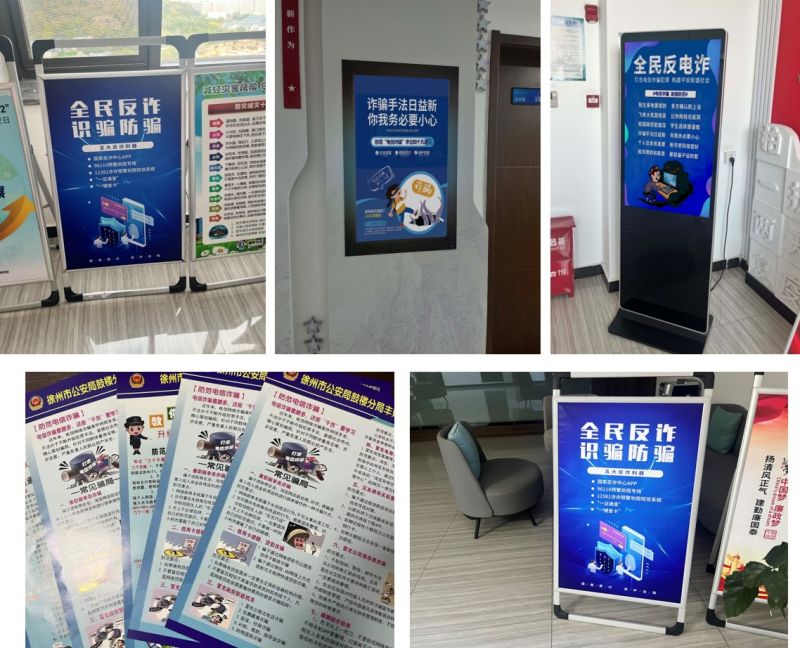 濃厚宣傳氛圍。建立反詐宣傳陣地,各企業(yè)在職工食堂、電梯口、宣傳櫥窗等多個陣地張貼反詐海報(bào)、播放反詐宣傳標(biāo)語,,積極構(gòu)建全方位、多層次、多形式、多渠道的宣傳格局,最大限度擠壓電信網(wǎng)絡(luò)詐騙犯罪活動空間。