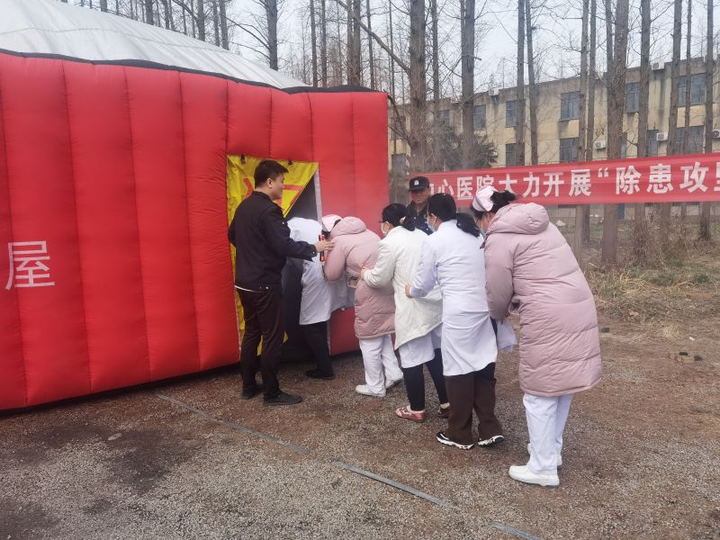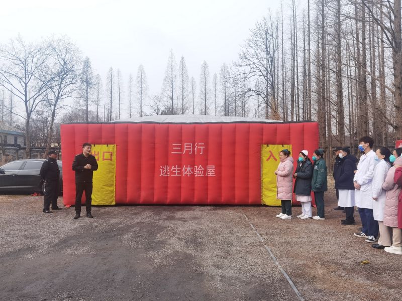 為了貼近實(shí)戰(zhàn),讓大家真實(shí)體驗(yàn)火災(zāi)來臨時(shí)的緊迫感,現(xiàn)場(chǎng)設(shè)置了充氣式疏散逃生體驗(yàn)屋,通過設(shè)置煙霧等方式模擬火災(zāi)現(xiàn)場(chǎng)。醫(yī)院邀請(qǐng)了“三月行”安全公司郭教員對(duì)參加演練職工進(jìn)行了簡(jiǎn)短的培訓(xùn),強(qiáng)調(diào)了進(jìn)入消防體驗(yàn)屋后的注意事項(xiàng),參加演練人員分組進(jìn)行演練。在郭教員的指引下,參加演練的人員彎腰捂鼻,依次進(jìn)入消防逃生屋,在彌漫著濃重的煙霧中摸索著彎膝前進(jìn),順利找到了出口逃生,演練在井然有序的氛圍下完成。