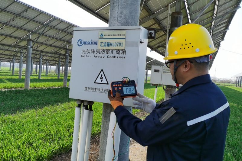 依據(jù)電力行業(yè)生產(chǎn)特點(diǎn),開展春季安全生產(chǎn)大檢查活動(dòng)也是保障“迎峰度夏”供電安全的重要手段。在“春檢”期間,各電站對(duì)重要發(fā)電設(shè)備停電檢修,開展電氣預(yù)防性試驗(yàn),為設(shè)備做全面的“健康體檢”,及時(shí)發(fā)現(xiàn)并消除設(shè)備隱患,確保設(shè)備安全穩(wěn)定運(yùn)行,關(guān)鍵時(shí)刻“不掉鏈子”。為了不產(chǎn)生損失電量,各電站的設(shè)備檢修工作都安排在逆變器解網(wǎng)后的晚間進(jìn)行。電站運(yùn)維人員發(fā)揚(yáng)吃苦耐勞的優(yōu)良作風(fēng),經(jīng)常奮戰(zhàn)至深夜乃至凌晨,以過硬的檢修技能高質(zhì)量完成各項(xiàng)檢修預(yù)試工作。在本次“春檢”活動(dòng)中,各電站集中攻堅(jiān)并消除了一批重要的設(shè)備缺陷,如合肥區(qū)域電站清理外線路樹障多處、阜南電站修復(fù)于集光伏區(qū)多處平單軸故障,宿州電站處理10kV備用電源電纜線鼻斷裂故障等。