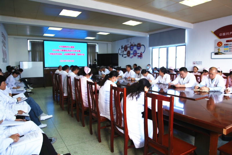 10月14日下午,大屯煤電公司中心醫(yī)院召開2024年三季度經(jīng)濟運行分析會暨“對標(biāo)全年目標(biāo),決戰(zhàn)第四季度”誓師大會,總結(jié)回顧1-9月份工作情況,分析經(jīng)濟運行情況,安排部署四季度重點工作任務(wù)。會議由院黨委副書記、院長張心海主持。院領(lǐng)導(dǎo)班子及護(hù)士長以上管理人員參加會議。