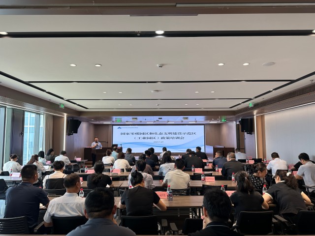 為深入貫徹落實(shí)國(guó)家“雙碳”戰(zhàn)略目標(biāo),加快推進(jìn)徐州市零碳園區(qū)建設(shè)。7月25日上午,由徐州市發(fā)改委主辦的“國(guó)家零碳園區(qū)和生態(tài)文明建設(shè)示范區(qū)(生態(tài)工業(yè)園區(qū))政策培訓(xùn)會(huì)議”在徐州國(guó)投集團(tuán)召開(kāi)。會(huì)議特邀中國(guó)環(huán)境報(bào)社總策劃師、國(guó)環(huán)產(chǎn)研(北京)環(huán)??萍脊究偨?jīng)濟(jì)師翟濱,中國(guó)環(huán)境科學(xué)院高級(jí)工程師袁殷,國(guó)環(huán)產(chǎn)研項(xiàng)目總監(jiān)陳天龍、技術(shù)專家張莎出席授課。市發(fā)改委二級(jí)調(diào)研員和相見(jiàn),徐州國(guó)投集團(tuán)黨委委員、副總經(jīng)理王濤,市發(fā)改委、科技、工信、生態(tài)、商務(wù)等部門(mén)業(yè)務(wù)處室主要負(fù)責(zé)人出席會(huì)議,各地經(jīng)發(fā)部門(mén)分管和科室負(fù)責(zé)人,有關(guān)園區(qū)管委會(huì)分管負(fù)責(zé)人共計(jì)50余人參會(huì)。