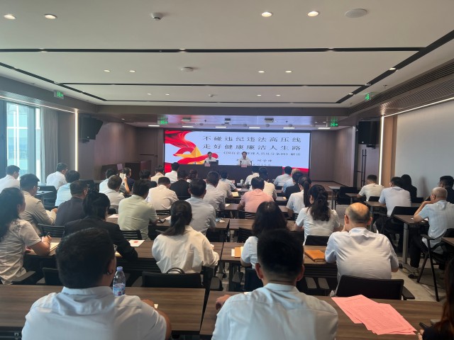 為進(jìn)一步增強(qiáng)國有企業(yè)管理人員的廉潔從業(yè)意識,規(guī)范從業(yè)行為,8月15日下午,國投集團(tuán)開展“不碰違紀(jì)違法高壓線,走好健康廉潔人生路”專題講座。本次講座特邀請徐州市紀(jì)委常委、監(jiān)委委員邱學(xué)鋒進(jìn)行授課。集團(tuán)公司領(lǐng)導(dǎo)班子成員、本部正副職管理人員、各二級公司班子成員、各三級公司主要負(fù)責(zé)人、掛職青年干部、集團(tuán)公司專職紀(jì)檢監(jiān)察干部參加本次培訓(xùn)。講座由集團(tuán)公司黨委書記、董事長孟光主持。
