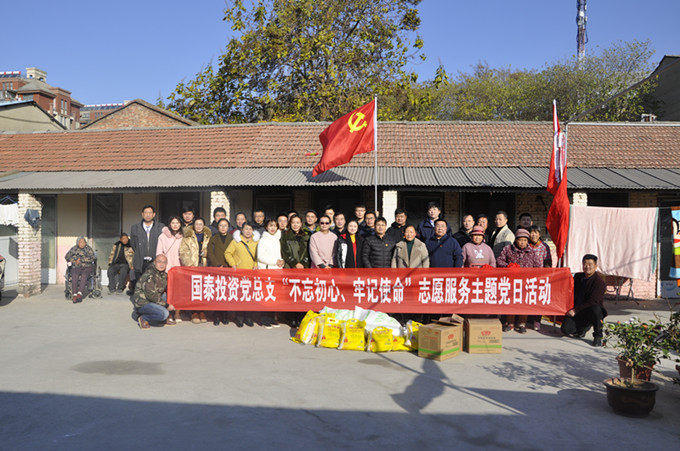 為深入推進(jìn)“不忘初心、牢記使命”主題教育,進(jìn)一步弘揚尊老、愛老、敬老、助老的中華民族傳統(tǒng)美德, 11月28日上午,國泰投資黨總支組織全體黨員、非黨中層干部前往香山養(yǎng)老院,開展“情暖夕陽,關(guān)愛老人”志愿服務(wù)主題黨日活動。