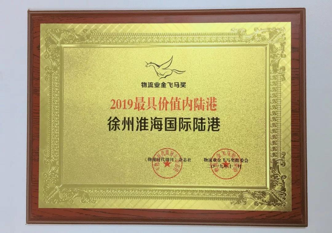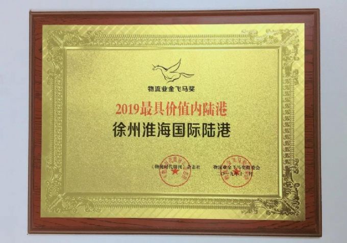 近期中國(guó)交通運(yùn)輸協(xié)會(huì)城市物流分會(huì)組織了“2019最具價(jià)值內(nèi)陸港”網(wǎng)上評(píng)選活動(dòng),經(jīng)過網(wǎng)上投票評(píng)選和線下綜合評(píng)估,徐州淮海國(guó)際陸港發(fā)展有限公司榮獲“2019最具價(jià)值內(nèi)陸港”物流業(yè)金飛馬獎(jiǎng)。