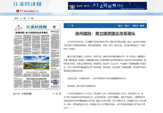 15.10月17日,《徐州國投:勇立國資國企改革潮頭》登上《江蘇經(jīng)濟(jì)報(bào)》,并被人民日報(bào)網(wǎng)、今日頭條、新浪網(wǎng)等20余家媒體轉(zhuǎn)載,有力提升了集團(tuán)公司的影響力和知名度。