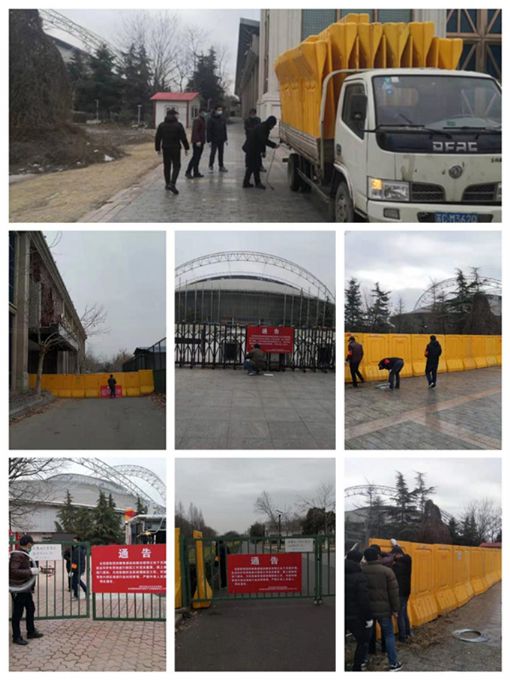 3.開展外圍防疫。因特殊地理位置,華強(qiáng)資產(chǎn)公司委托成功物業(yè)公司承擔(dān)本部外圍防疫工作,經(jīng)過現(xiàn)場勘察制定了園區(qū)水馬封堵及復(fù)工園區(qū)防疫方案。在目前防疫工作嚴(yán)峻、水馬租賃困難及運(yùn)輸不便的情況下,通過各種途徑聯(lián)系到租賃方,于2月11日上午組織成功大廈工程人員、藝術(shù)館項(xiàng)目人員以及華強(qiáng)安防人員利用半天時(shí)間進(jìn)行突擊封堵,除主要出入口封堵外,還對在仔細(xì)排查園區(qū)發(fā)現(xiàn)的十余處人為損毀缺口進(jìn)行封堵處理,同時(shí)清退閑雜人員并張貼封園通告。